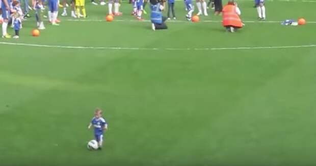 Малыш на футбольном поле увидел пустые ворота и решил не терять время. Дойдя до ворот, он уверенно забивает гол, в то время как трибуны аплодируют и громко ликуют. Когда малыш понимает, что на него смотрит весь стадион, он поднимает руки вверх, как это делают известные футболисты после забитого гола.